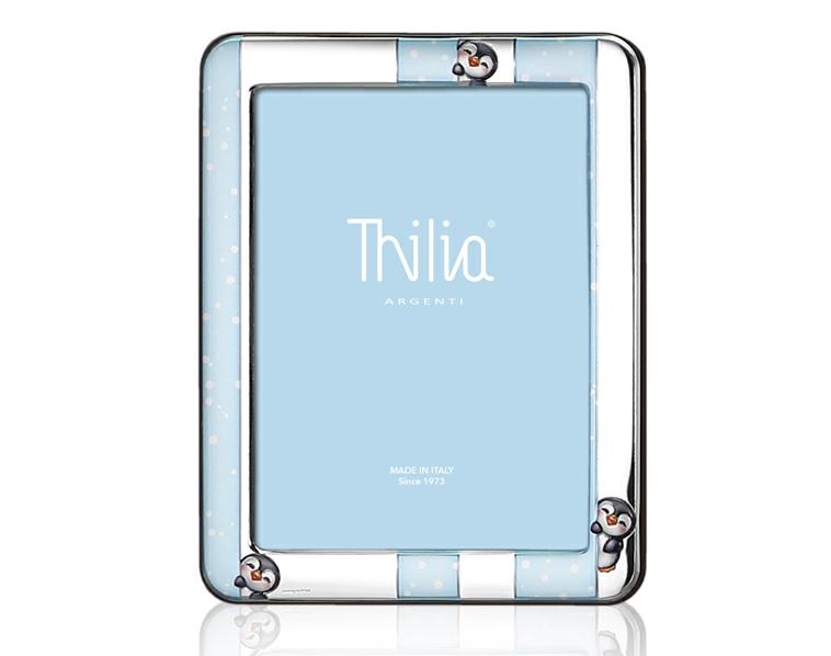 454596 CORNICE 10x15cm CELESTE DECORO PINGUINI METALLO PREZIOSO